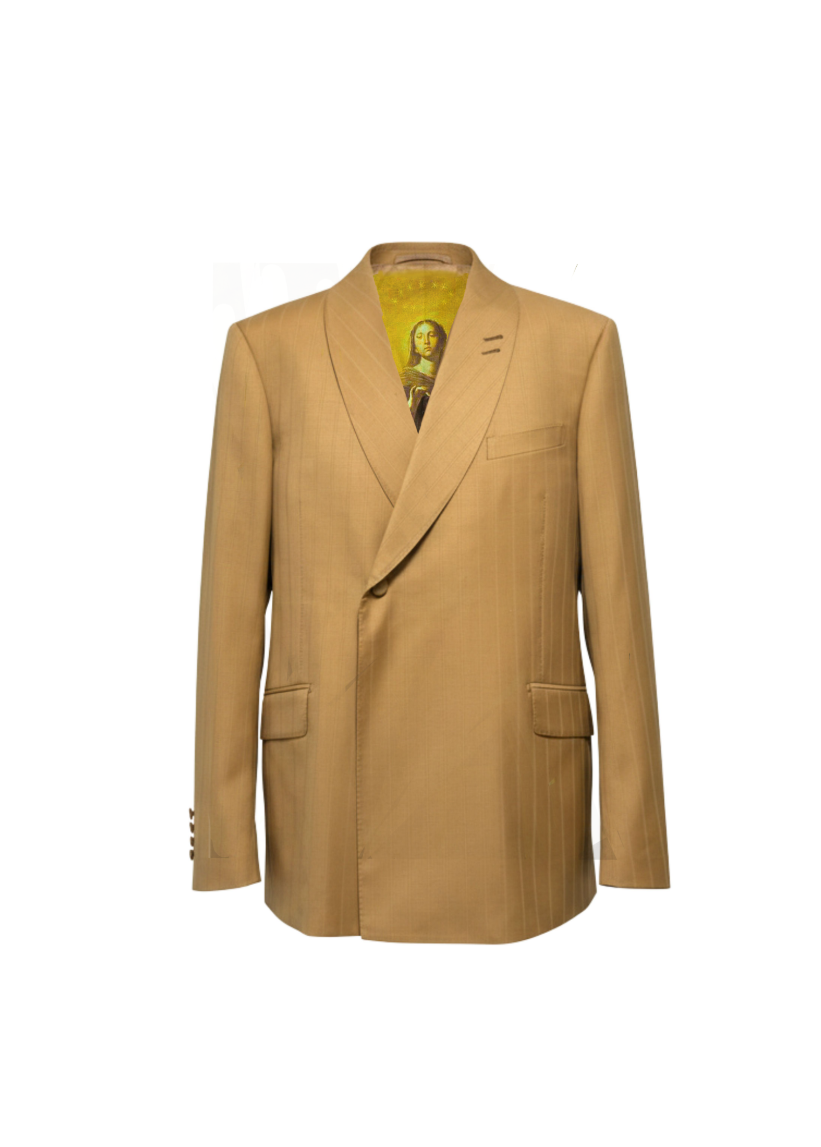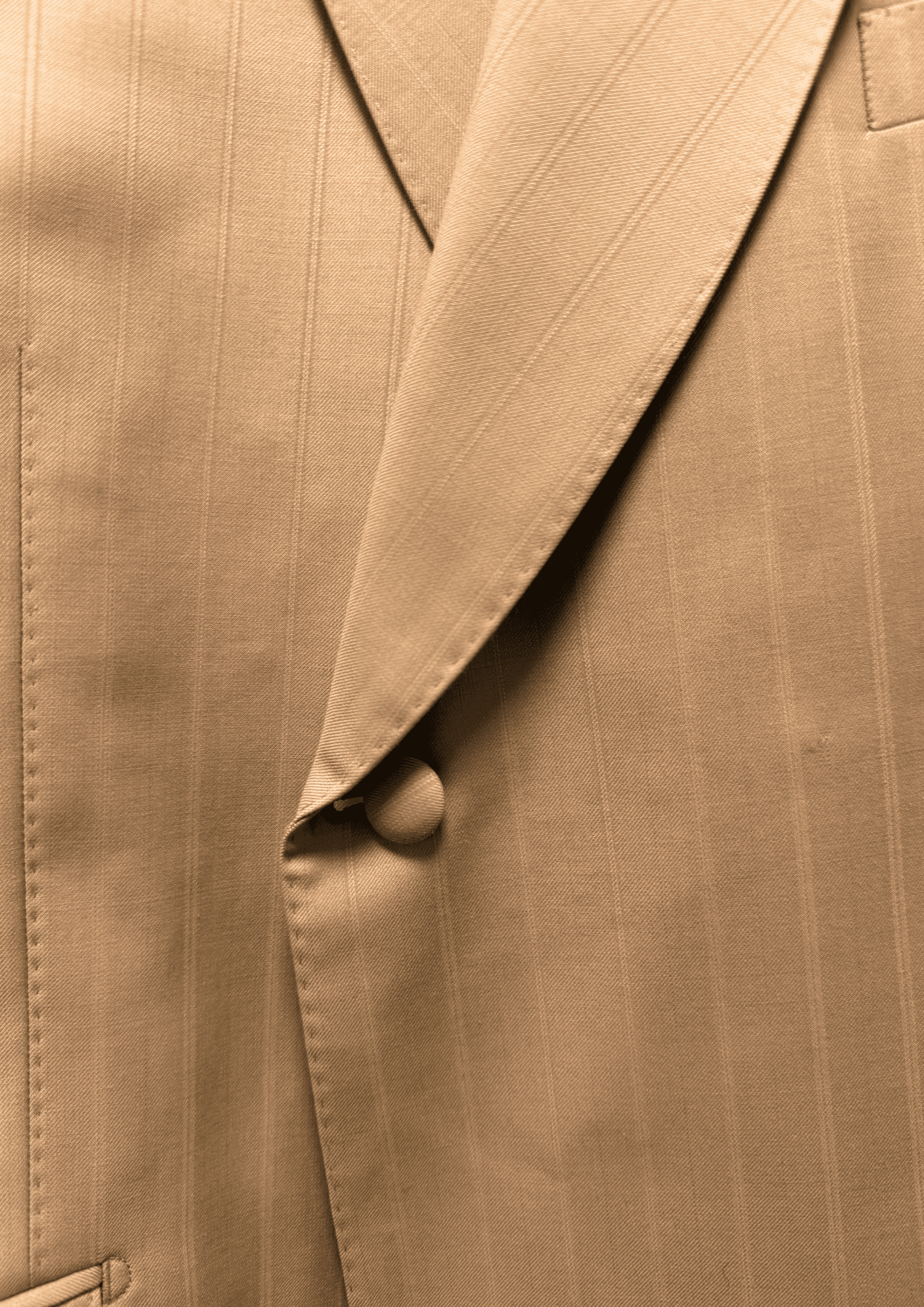 Scirocco channels 1970s Sicilian attitude in a warm sand pinstripe.